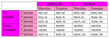2º Sustituye en estas oraciones las partes destacados por un posesivo adecuado y vuélvalas a escribir.